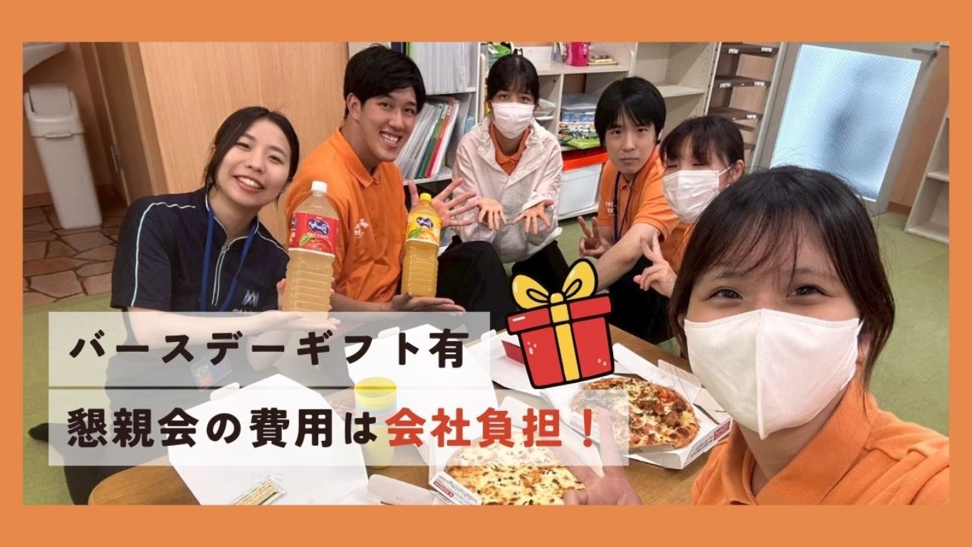 ★有給+リフレッシュ休暇完備で年間休日120日可能! ★「困ったときはお互い様」と協力体制あり! ★チームで子どもを支える体制で日々取り組んでいます♪ 【どんな職場?】 運動療育、制作活動、料理体験、音楽療法、野外学習など多彩な支援を実施しています。 季節行事や地域イベントも多数取り組んでいます! 【入社してまずやること】 1日の流れを把握し、先輩と一緒に現場へ。 子どもとの関わり方・プログラム運営を覚えて、慣れたら担当もお任せします◎ その後も先輩のフォローがあるので安心です! 【働きやすさ】 正当な評価制度、充実した研修、完全週休2日で残業少なめ。 「健康経営優良法人」「ホワイト企業認定」も取得済みです! 【やりがい】 子どもの「できた!」に立ち会えるのが一番の魅力です♪ 仲間と一緒に成長しながら働きたい方にピッタリの環境です。