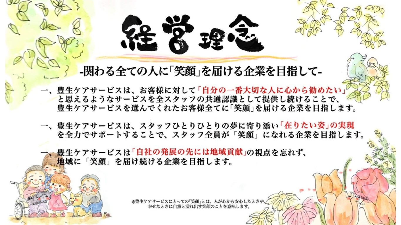 【歓迎】 ・何事にも一生懸命取り組める方 ・与えられた仕事に対して責任感を持って全うできる方 ・不器用でも与えられたお仕事に対して愚直に取り組める方 ・人の話にしっかりと耳を傾けることができる方 ・利用者様やヘルパーに寄り添い、信頼関係を築ける方 ・チームワークを大事にできる方 ・プライベートも大切にしながら長く働きたい方 ・明確な評価基準のもとで成長したい方 ・将来的に管理者を目指したい方